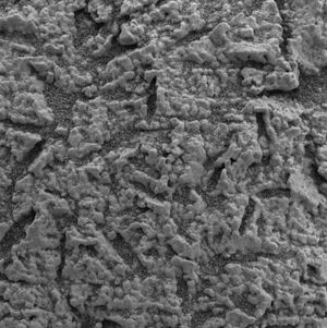 The microscopic imager onboard NASA's Mars Exploration Rover Opportunity, shows a portion of the rock outcrop at Meridiani Planum, Mars,…