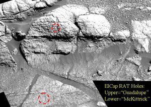 NASA's Mars Exploration Rover Opportunity, shows a close up of the rock dubbed 'El Capitan,' located in the rock outcrop…