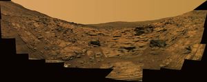 NASA's Mars Exploration Rover Opportunity captured a sweeping stereo image of 'Burns Cliff' after driving right to the base of…