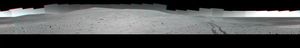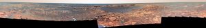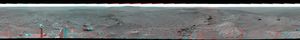 This 360-degree view taken in August, 2006, shows Opportunity's last stop on surface of Meridiani Planum. At center of the…
