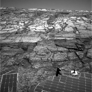 Using its rock abrasion tool, otherwise known as 'Rat,' NASA's Mars Exploration Rover Opportunity dotted the slope of 'Endurance Crater'…