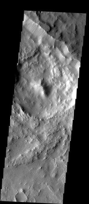 Multiple slope streaks are visible on the rim of Henry Crater of Mars as seen by NASA's 2001 Mars Odyssey…