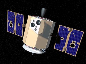 Artist's conception of the Clementine spacecraft, a joint mission of the U.S. Strategic Defense Initiative Organization and NASA.