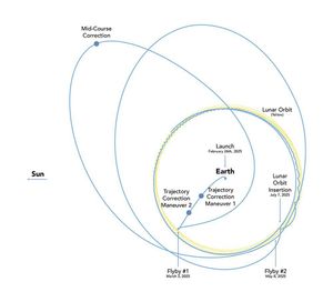 Lunar Trailblazer's voyage to the Moon will take between four and seven months. This orbital diagram shows the low-energy transfer…