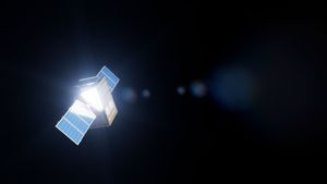 Sunlight gleams off NASA's Lunar Trailblazer as the spacecraft orbits the Moon in this artist's concept. The mission will discover…