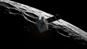 NASA's Lunar Trailblazer approaches the Moon as it enters its science orbit in this artist's concept.