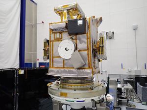 NASA's Lunar Trailblazer sits on its rotation fixture after being fueled and prior to being installed to the EELV Secondary…