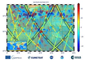 The data in this graphic are the first sea surface height measurements from the Sentinel-6 Michael Freilich satellite (S6MF), which…