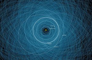 This diagram shows the orbit of binary asteroid Didymos around the Sun.