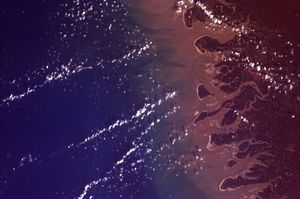 This is an image from NASA's EarthKAM of the Rio Gurupi in the Brazilian state of Maranhao and its delta.…