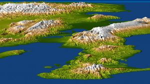 The topography surrounding the Laguna Salada Fault in the Mexican state of Baja, California, is shown in this perspective view…