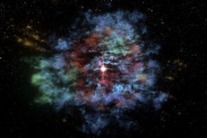 A seething cauldron of light appears to bubble and ooze around the remains of a giant star that astronomers have…