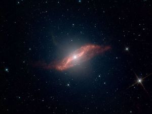 This image taken by NASA's Spitzer Space Telescope shows in unprecedented detail the galaxy Centaurus A's last big meal: a…