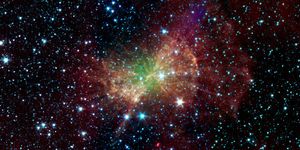 The 'Dumbbell nebula,' also known as Messier 27, pumps out infrared light in this image from NASA's Spitzer Space Telescope.…