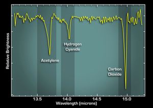 This graph, or spectrum, from NASA's Spitzer Space Telescope tells astronomers that some of the most basic ingredients of DNA…