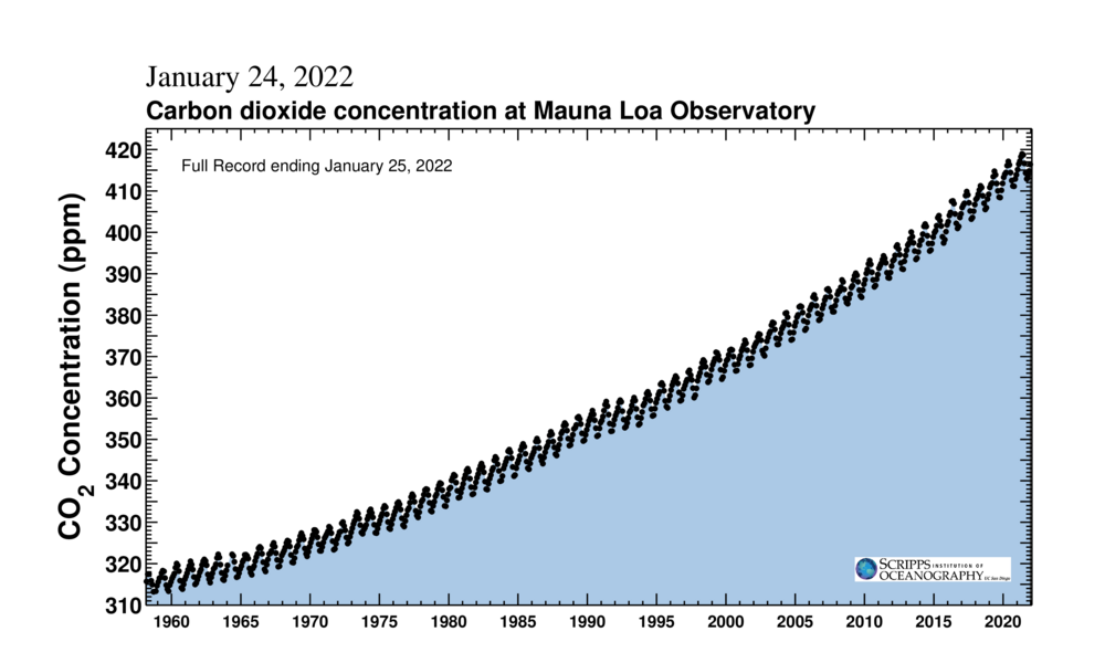 The graph to the left, called the Keeling curve, maps the overall rise in atmospheric carbon dioxide since 1958. But why does it have a zig-zag shape, showing cyclical rises and falls in carbon dioxide levels?