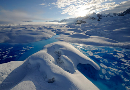Ice sheets are large glaciers that cover much of Greenland and Antarctica.